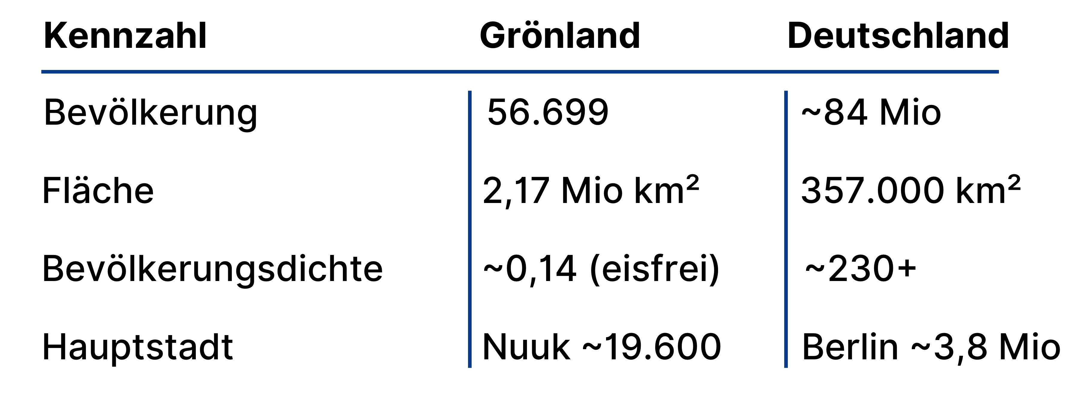 Grönland ist ein autonom verwaltetes Gebiet des Königreichs Dänemark und liegt nördlich des Polarkreises zwischen dem Arktischen und dem Atlantischen Ozean. Geografisch wird es dem nordamerikanischen Kontinent zugeordnet, während es politisch als selbstverwaltete Region innerhalb Dänemarks fungiert. Mit einer Fläche von 2.166.086 km², von der etwa 81 % von Inlandeis bedeckt sind, beherbergt die Insel rund 56.600 Einwohner. Die Mehrheit der Bevölkerung lebt in den eisfreien Küstengebieten im Südwesten, insbesondere in der Hauptstadt Nuuk, die etwa 19.600 Einwohner zählt. Seit dem Inkrafttreten des Selbstregierungsgesetzes im Jahr 2009 verfügt Grönland über eine weitgehende Autonomie in der Verwaltung seiner inneren Angelegenheiten. Die legislative Gewalt liegt beim Parlament „Inatsisartut“, das aus 31 Mitgliedern besteht. Die Exekutive wird von der Regierung „Naalakkersuisut“ ausgeübt, die unter anderem für die Bereiche Bildung, Gesundheit, Fischerei, Rohstoffe, Umwelt und Verkehr zuständig ist. Dänemark behält hingegen die Verantwortung für die Außenpolitik, Sicherheits- und Verteidigungsangelegenheiten sowie für die Währungs- und Staatsangehörigkeitspolitik. Als Amtssprachen gelten Grönländisch (Kalaallisut) und Dänisch. Grönland ist über Dänemark Mitglied der NATO, gehört jedoch nicht der Europäischen Union an, aus der es 1985 austrat und seitdem den Status eines Überseeischen Landes und Gebietes (OCT) innehat. Grönlands Wirtschaft ist stark spezialisiert: Rund 90 % der Exporterlöse entfallen auf die Fischerei und die Fischverarbeitung. Ein jährlicher Blockzuschuss aus Dänemark in Höhe von etwa vier Milliarden Dänischen Kronen, was mehr als 20 % des Bruttoinlandsprodukts entspricht, trägt maßgeblich zur Stabilisierung des öffentlichen Sektors bei. Im Jahr 2025 belief sich das nominale Bruttoinlandsprodukt auf rund 24,48 Milliarden Dänische Kronen, was etwa 3,28 Milliarden Euro entspricht. Für die deutsche Politik ist insbesondere von Bedeutung, dass viele Entscheidungen in Nuuk getroffen werden, während zentrale außen- und sicherheitspolitische Kompetenzen weiterhin in Kopenhagen verbleiben.